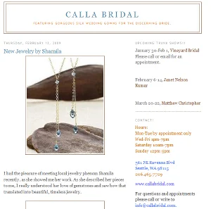 "I had the pleasure of meeting local jewelry phenom Shamila recently, as she showed me her work. As she described her pieces to me, I really understood her love of gemstones and saw how that translated into beautiful, timeless jewelry."